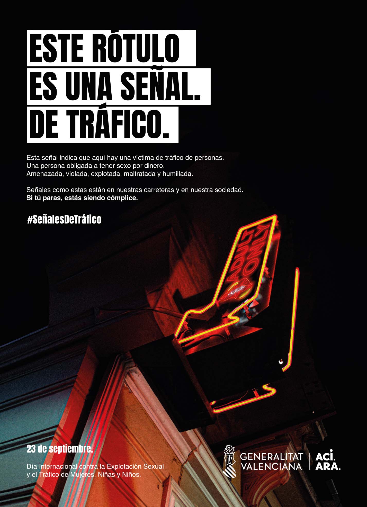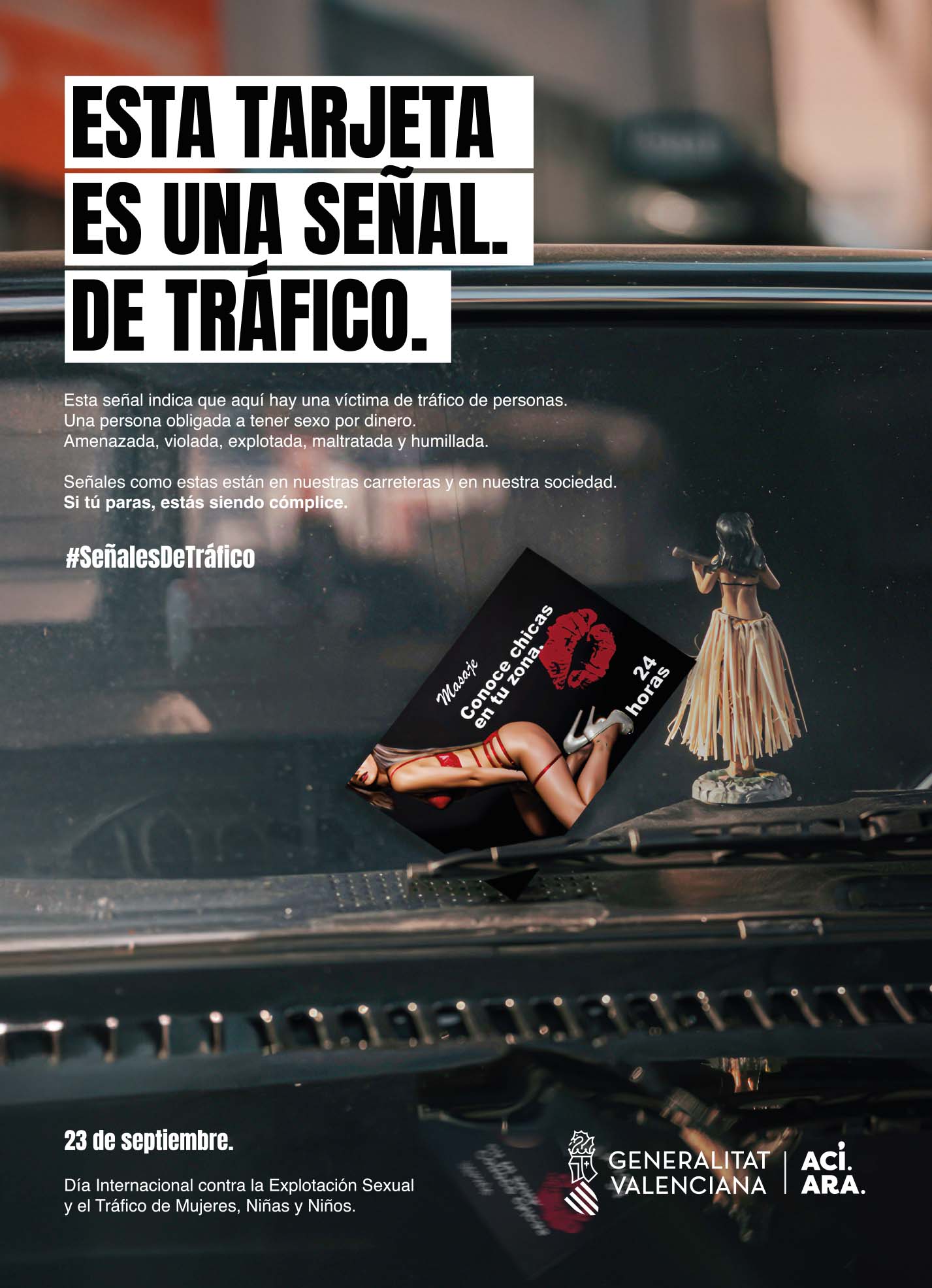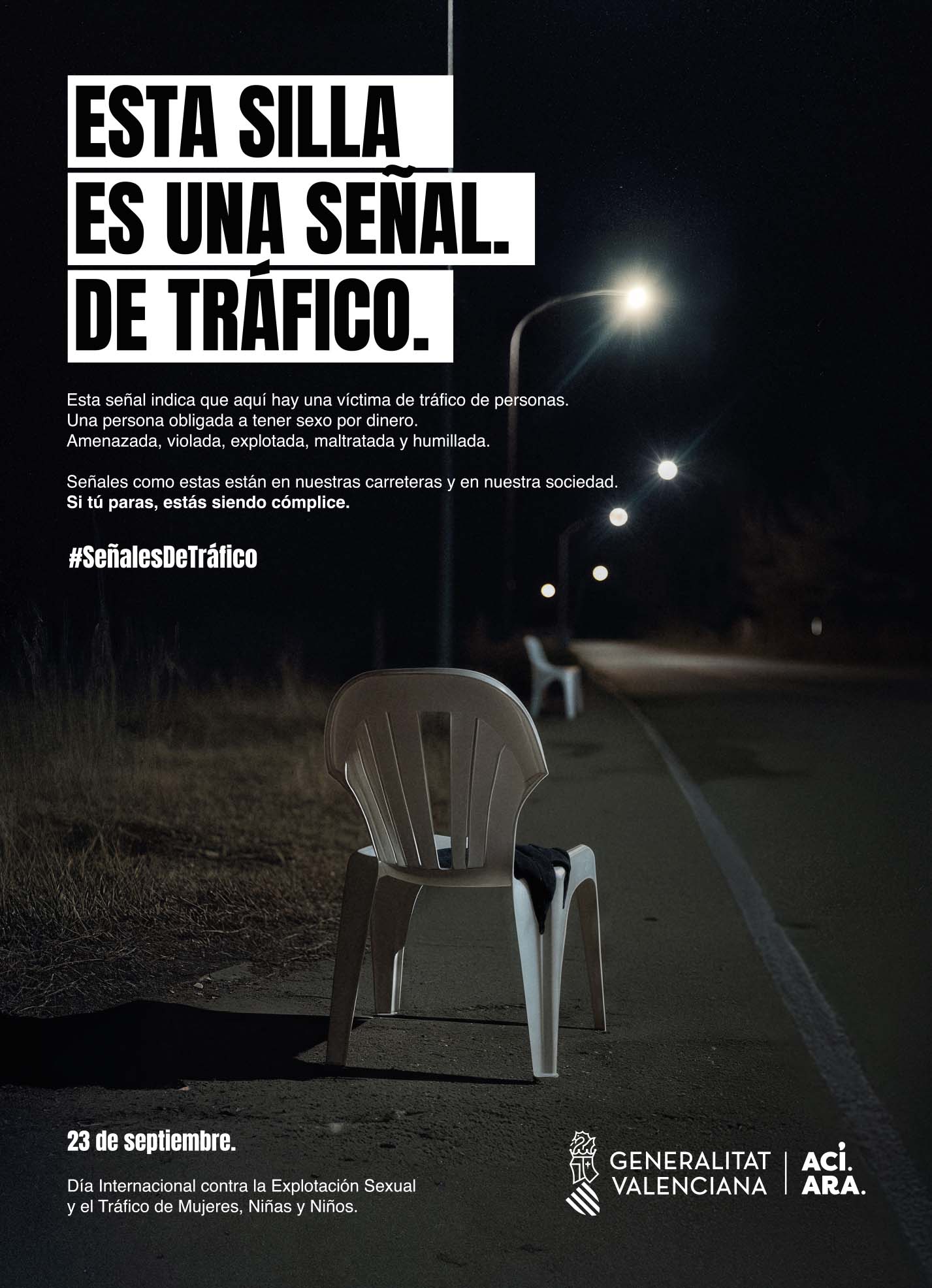 Nuestras carreteras están llenas de señales. Unas nos protegen y otras nos dicen que seguimos conviviendo con el tráfico de personas, con la explotación sexual, con la esclavitud y la violencia. Señales como una silla, un rótulo, una valla o una tarjeta.