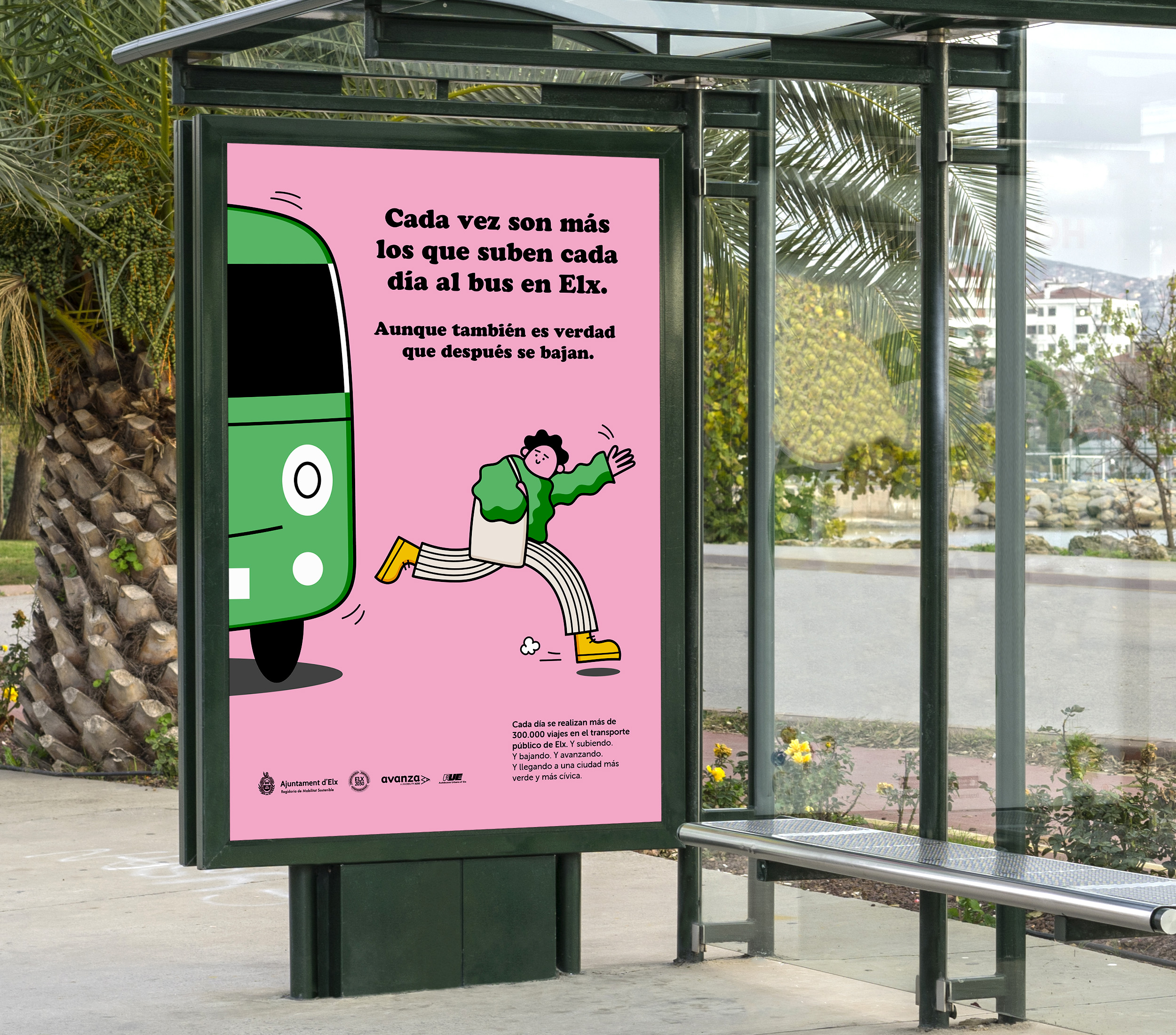 Elx apuesta por la movilidad verde. Y lo hace con un servicio de autobuses moderno, ecológico, smart y renovado. Nos pidió una campaña para contarlo y lo hicimos saliendo a las calles con ellos, con piezas sin humos, con humor y que formaran parte del paisaje urbano de una ciudad que avanza (en bus, of course)